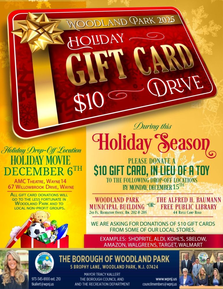 This Holiday Season, let's help local families in need! The Borough of Woodland Park's annual Gift Card Drive is officially underway.